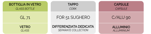 Raccolta differenziata, indifferenziata. Verifica le disposizioni del tuo Comune. Le etichette apposte sulla bottiglia non sono soggette a smaltimento separato dalla bottiglia in vetro.